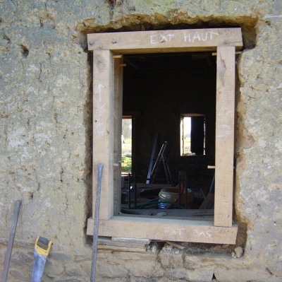 Les jambages peuvent être soit maçonnés avec de la pierre taillée grossièrement, soit avec de la pierre de taille, en tout cas en cohérence avec le reste du bâti. Il est également possible d'utiliser une carrée de bois, cela se pratiquait un peu partout (voir le paragraphe suivant sur les murs à la terre).