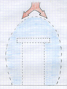 Le croquis ci-après montre une coupe du mur, vue de dessus. Les ébrasements sont là pour permettre le passage de la lumière dans la pièce, ils peuvent donc ne pas être symétriques. En tout cas, il faut en tenir compte pour l'ouverture du mur.