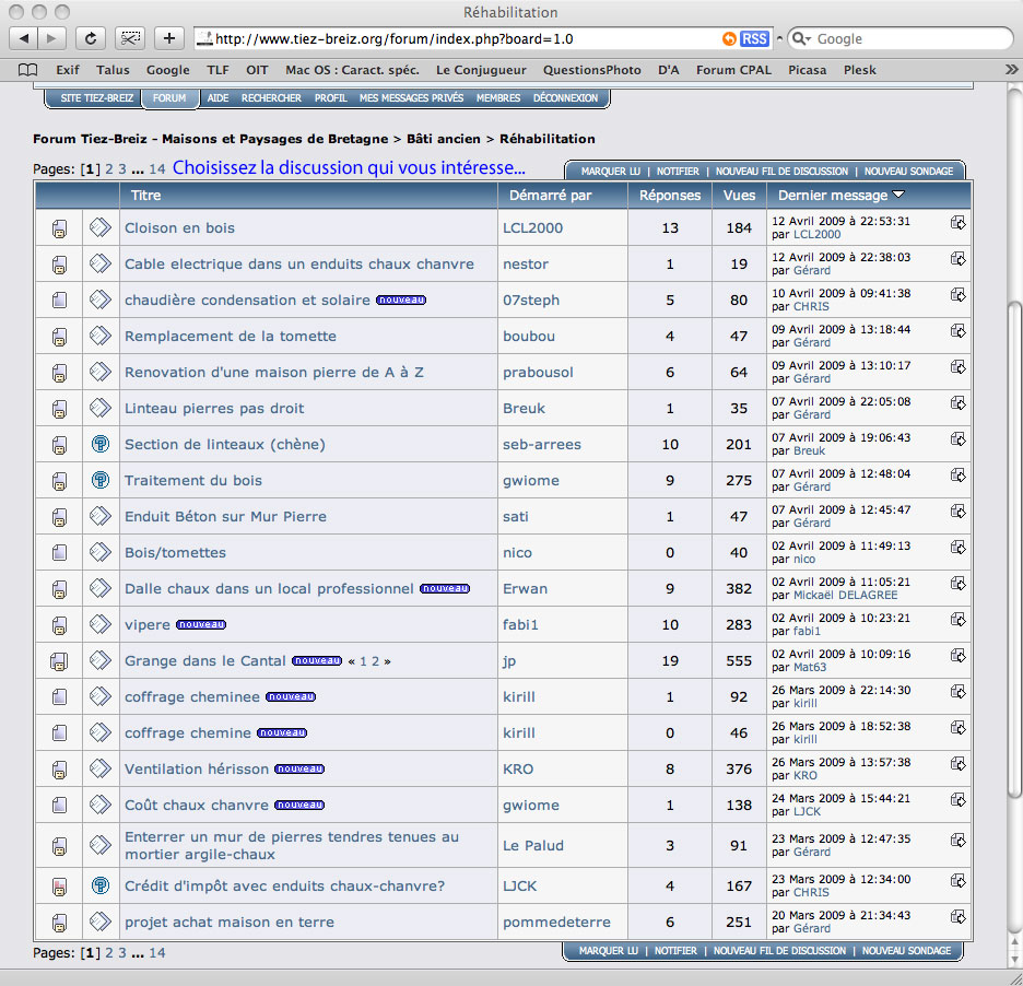 Vous voyez que cette rubrique abrite de nombreux fils, il y en a ici 14 pages (normal, vu qu'il y a 269 fils !)