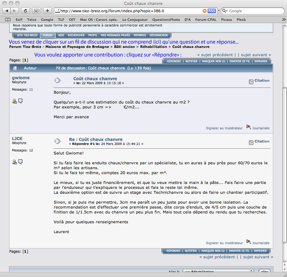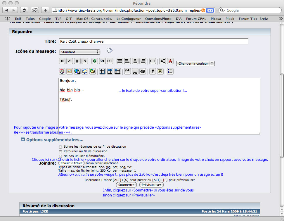 Aide pour utiliser le forum de discussion