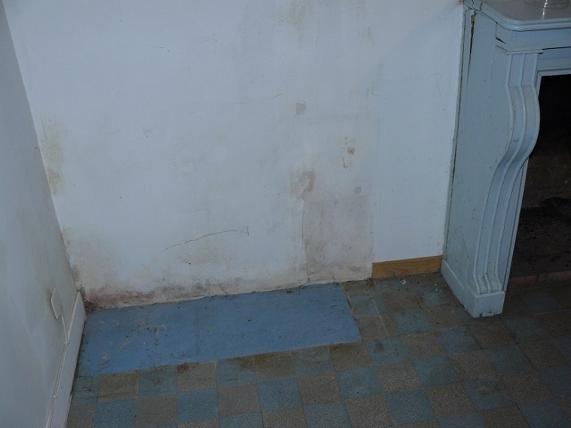 A droite le mur côté cour, au fond le mur mitoyen. Il y a ici la seule ventilation du doublage placo, qui ne doit pas servir à grand chose.