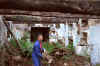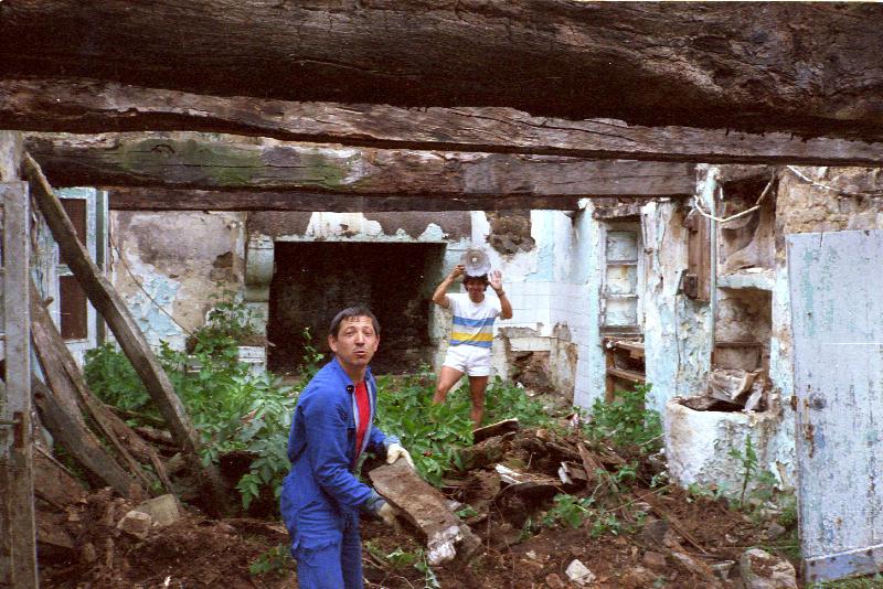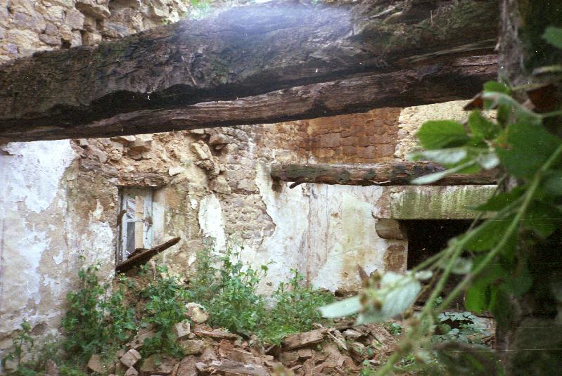pluie a pénétré à l'intérieur ; sous l'action du gel, le mur a gonflé, menaçant de s'écrouler. |